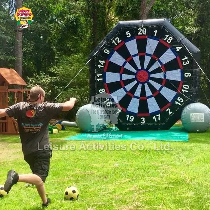 Leisure Activities® er en profesjonell produsent og leverandør av oppblåsbare spill i Kina, med egen fabrikk. Giant Soccer Dart II Inflatable Sports er et utendørs festspesifikt oppblåsbart sportsutstyr som kombinerer spillingen av fotball og dart. Den er laget av høykvalitets PVC-materiale og har dobbeltråds syteknologi. Den passer for alle aldersgrupper, praktisk og holdbar, har komplette kvalifikasjoner og støtter tilpasning, og passer for ulike aktivitetsscenarier. Det er et kostnadseffektivt produkt med både moro og praktisk.