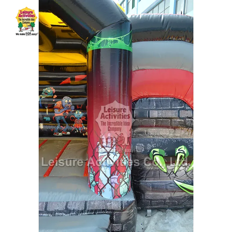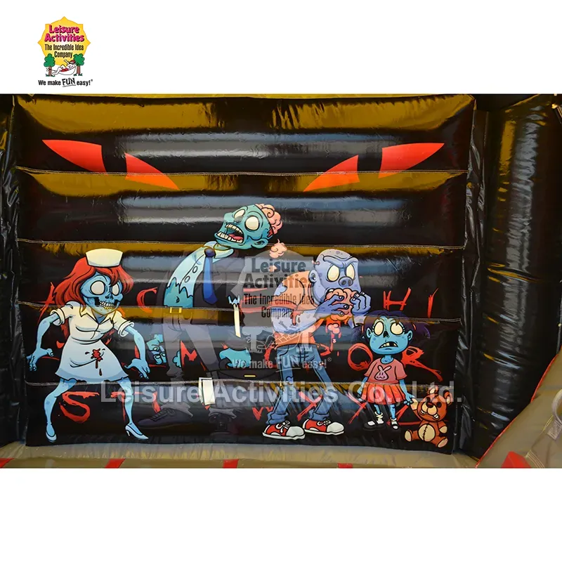 Leisure Activities har egen fabrikk og er produsent og leverandør av små oppblåsbare flerspill hoppeslott hjemsøkt med skli i Kina. Dette produktet har dristige fargevalg som skaper et spennende miljø. Den egner seg veldig godt til Halloween-fester, høstfestivaler, temabursdagsbegivenheter og underholdning.